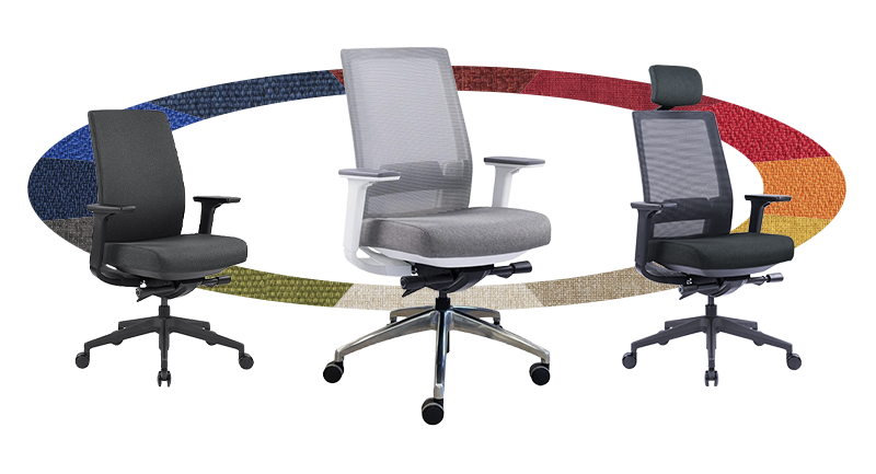 Pick your arm style, base, colors, fabrics, and ergonomic add-ons. Choose the details that match your workspace and your needs.